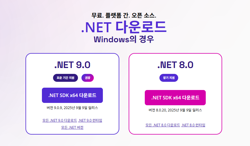 홈페이지https://dotnet.microsoft.com/ko-kr/